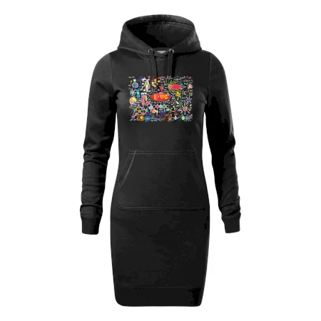 Dámské mikinové šaty MALFINI Snap 419 jsou ideální volbou pro ženy, které hledají pohodlný a stylový kousek pro volný čas nebo každodenní nošení. Lehce vypasovaný střih s bočními švy podtrhuje ženskou siluetu, zatímco kapuce s podšívkou a stahovací šňůrkou dodává ležérní vzhled.