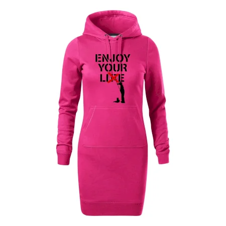 Dámské mikinové šaty MALFINI Snap 419 jsou ideální volbou pro ženy, které hledají pohodlný a stylový kousek pro volný čas nebo každodenní nošení. Lehce vypasovaný střih s bočními švy podtrhuje ženskou siluetu, zatímco kapuce s podšívkou a stahovací šňůrkou dodává ležérní vzhled.