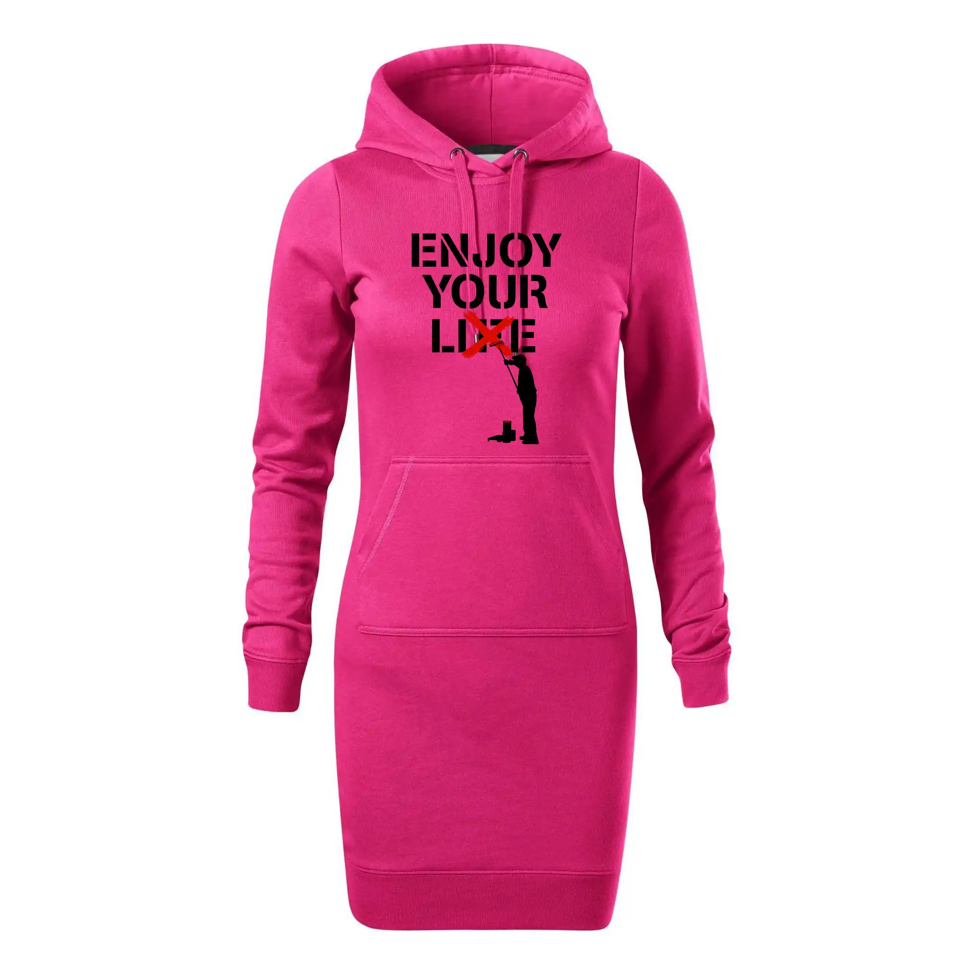 Dámské mikinové šaty MALFINI Snap 419 jsou ideální volbou pro ženy, které hledají pohodlný a stylový kousek pro volný čas nebo každodenní nošení. Lehce vypasovaný střih s bočními švy podtrhuje ženskou siluetu, zatímco kapuce s podšívkou a stahovací šňůrkou dodává ležérní vzhled. Šaty mají délku nad kolena a jsou vybaveny nakládanou kapsou ve stylu „klokanky“. Materiál je měkký a příjemný na dotek díky směsi bavlny a polyesteru s nepočesanou vnitřní stranou.