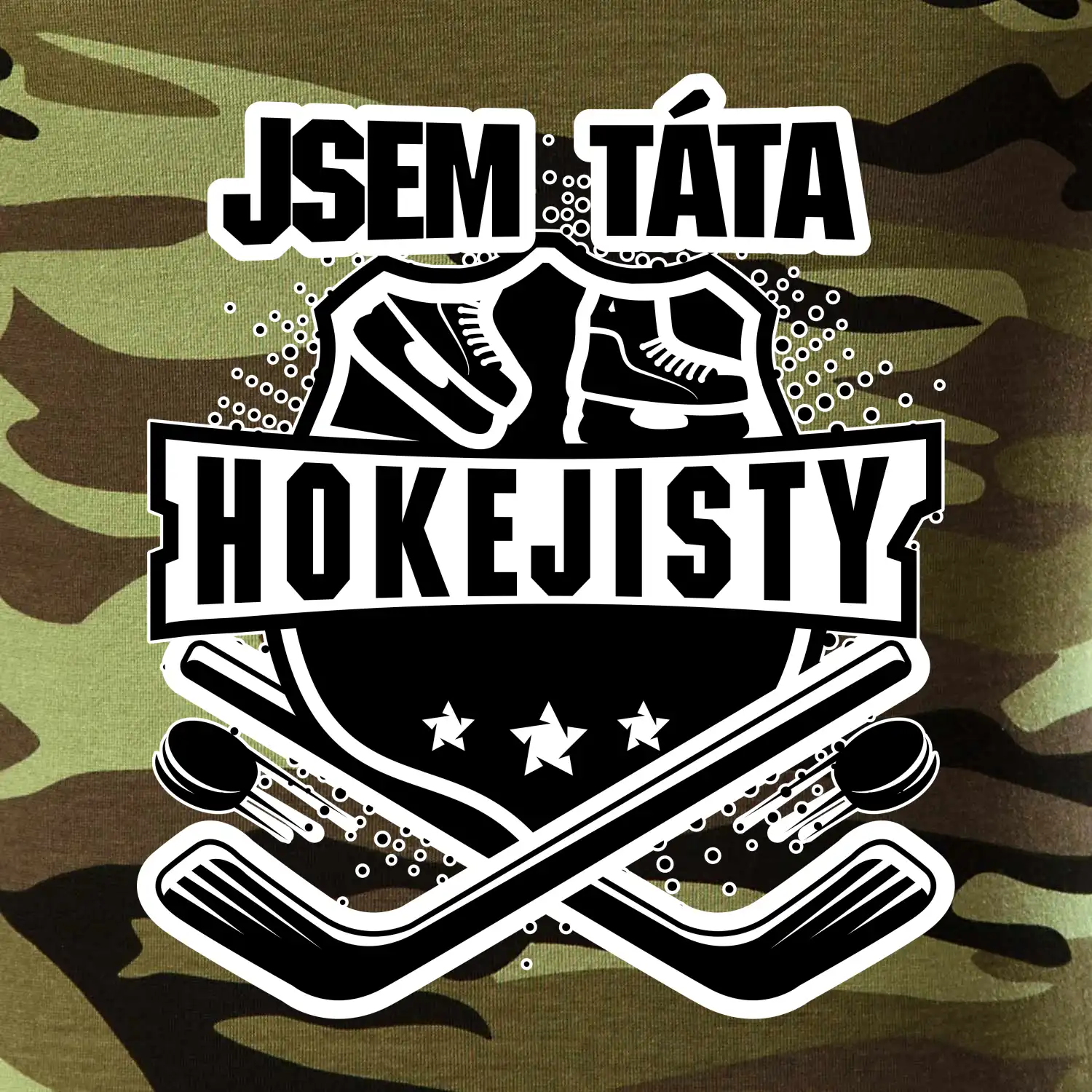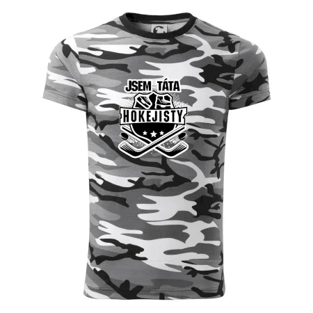 Tričko střední gramáže v barvách camouflage. Střih s bočními švy. Lem průkrčníku ze žebrového úpletu s přídavkem 5 % elastanu. Vnitřní část zadního průkrčníku začištěna páskou v barvě camouflage.