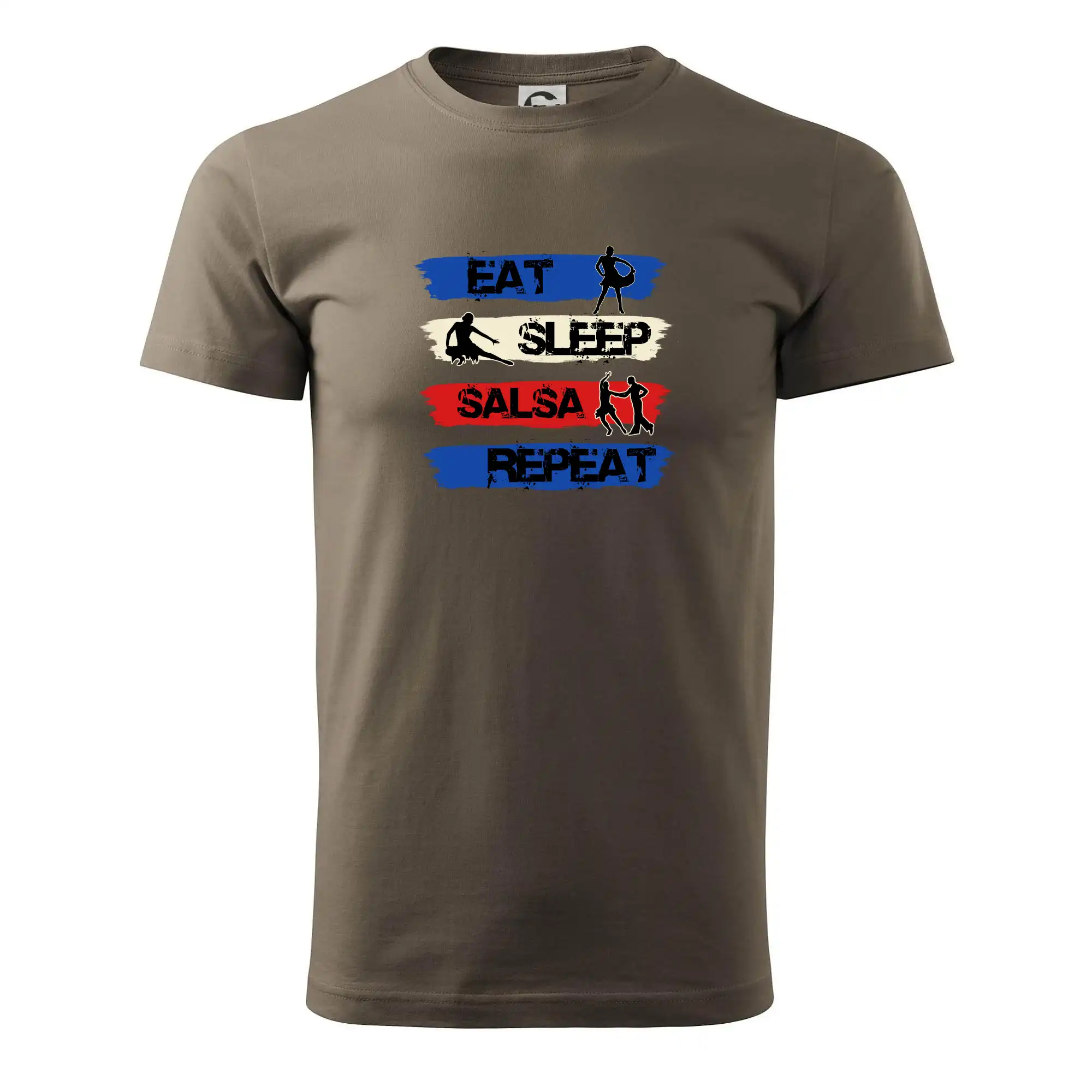 Tričko střední gramáže v barvách camouflage. Střih s bočními švy. Lem průkrčníku ze žebrového úpletu s přídavkem 5 % elastanu. Vnitřní část zadního průkrčníku začištěna páskou v barvě camouflage.