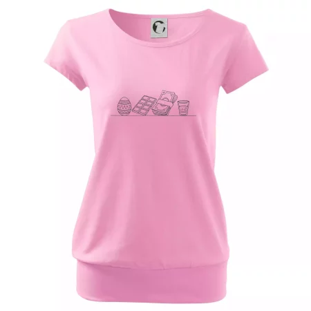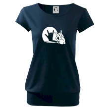 Trendové dámské triko s velmi krátkým rukávem, volnějšího střihu, v dolním kraji všité do širokého lemu. Kulatý průkrčník s úzkým lemem ze shodného materiálu.