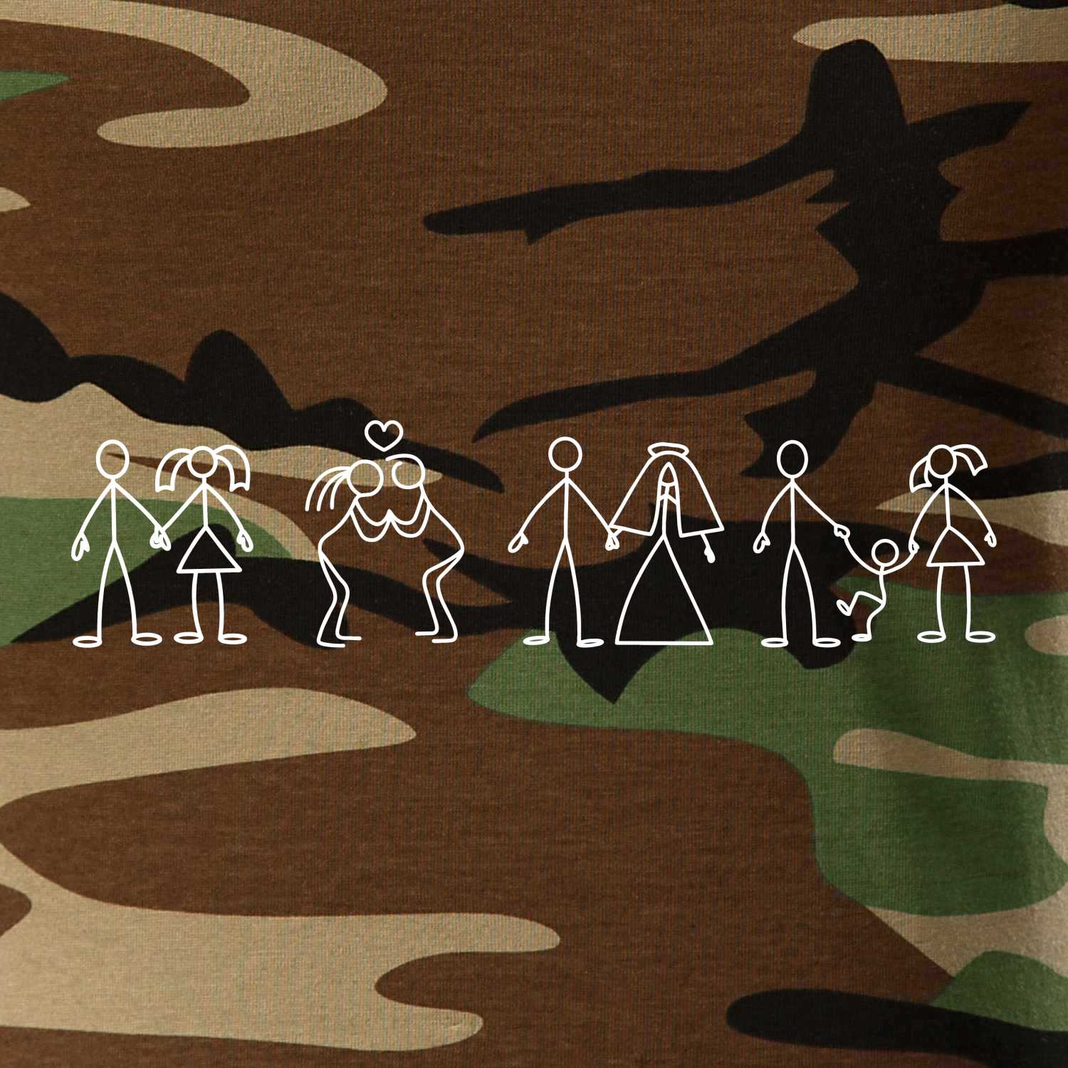 Tričko střední gramáže v barvách camouflage. Střih s bočními švy. Lem průkrčníku ze žebrového úpletu s přídavkem 5 % elastanu. Vnitřní část zadního průkrčníku začištěna páskou v barvě camouflage.