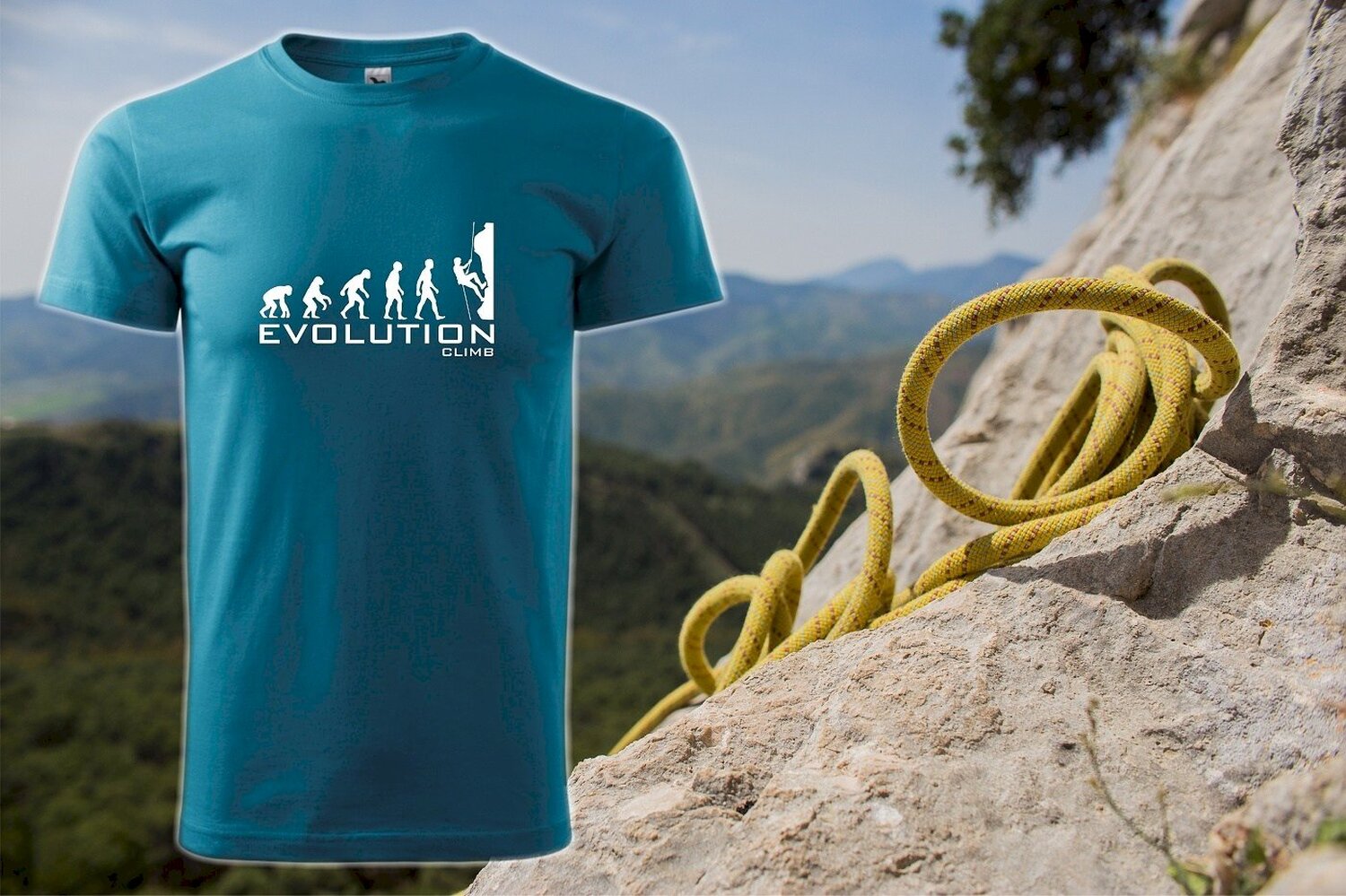 Pořádný horolezec musí mít pořádnou horolezeckou výbavu: karabinu, lano, sedák, lezačky a samozřejmě tričko s horolezeckým motivem!