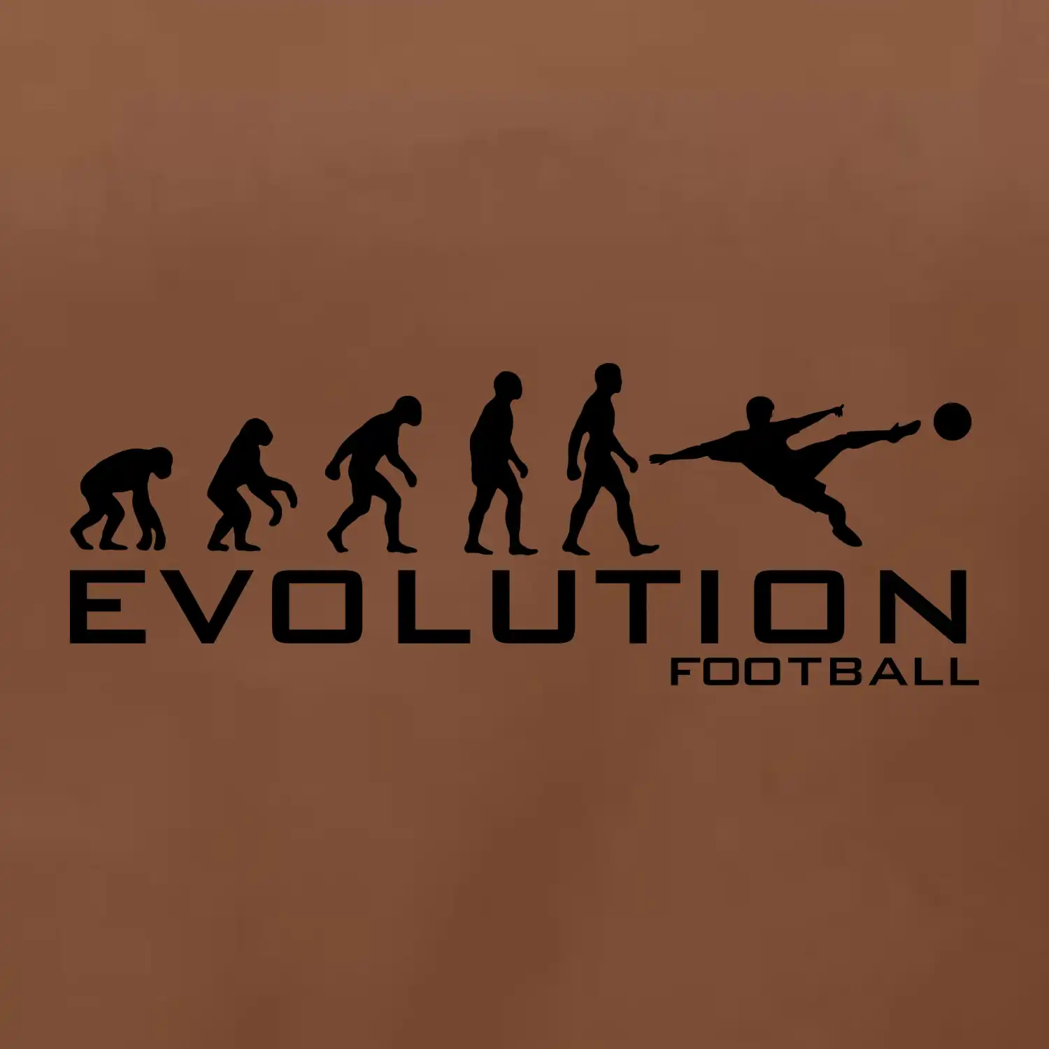 Tento motiv je trefou do černého pro všechny, kteří mají fotbal v krvi! Originální grafika zachycuje evoluční cestu člověka až k fanouškovi kopané – od opice, přes pravěkáho bojovníka, až po hráče, co právě střílí gól. Tahle evoluce končí jednoznačně: u kulatého míče a lásky ke sportu!