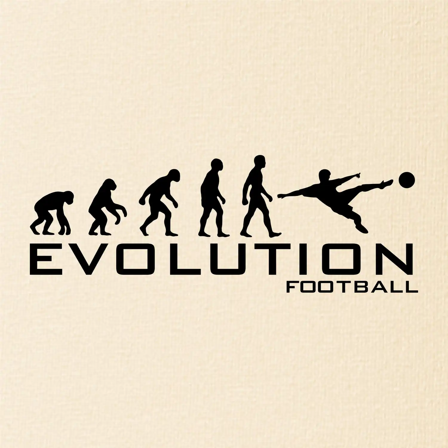 Tento motiv je trefou do černého pro všechny, kteří mají fotbal v krvi! Originální grafika zachycuje evoluční cestu člověka až k fanouškovi kopané – od opice, přes pravěkáho bojovníka, až po hráče, co právě střílí gól. Tahle evoluce končí jednoznačně: u kulatého míče a lásky ke sportu!