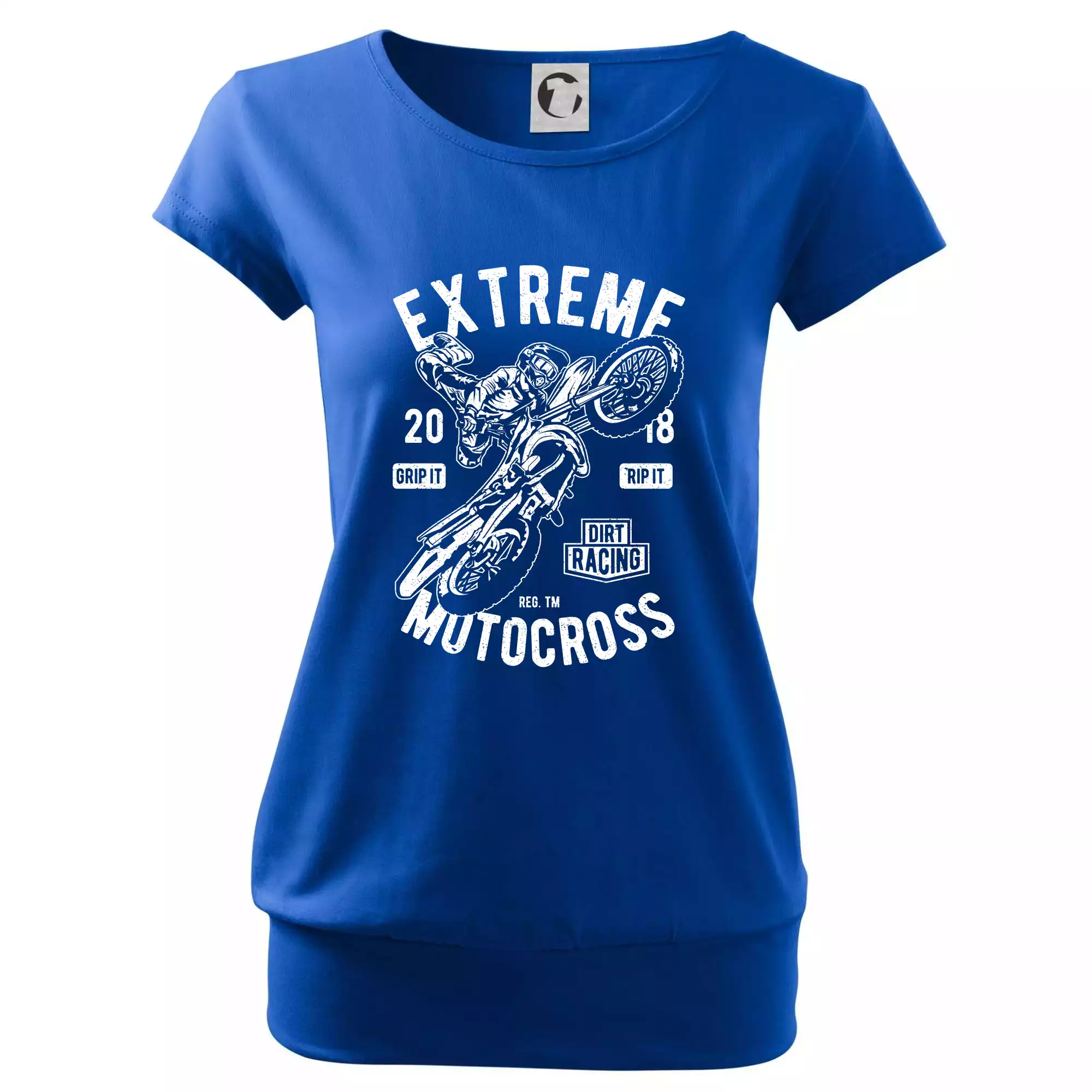 Trendové dámské triko s velmi krátkým rukávem, volnějšího střihu, v dolním kraji všité do širokého lemu. Kulatý průkrčník s úzkým lemem ze shodného materiálu.