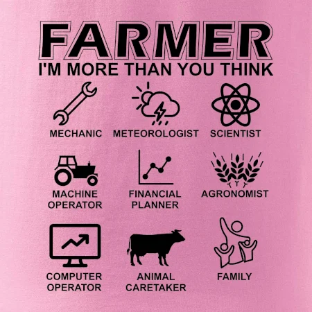 Trika a mikiny pro kombajnistu, traktoristu a farmáře.Tričko na kterém je zobrazená práce farmáře, která zahrnuje více úkonů než si myslíš. Tričko je vhodný dárek pro každého farmáře, který miluje svou práci.