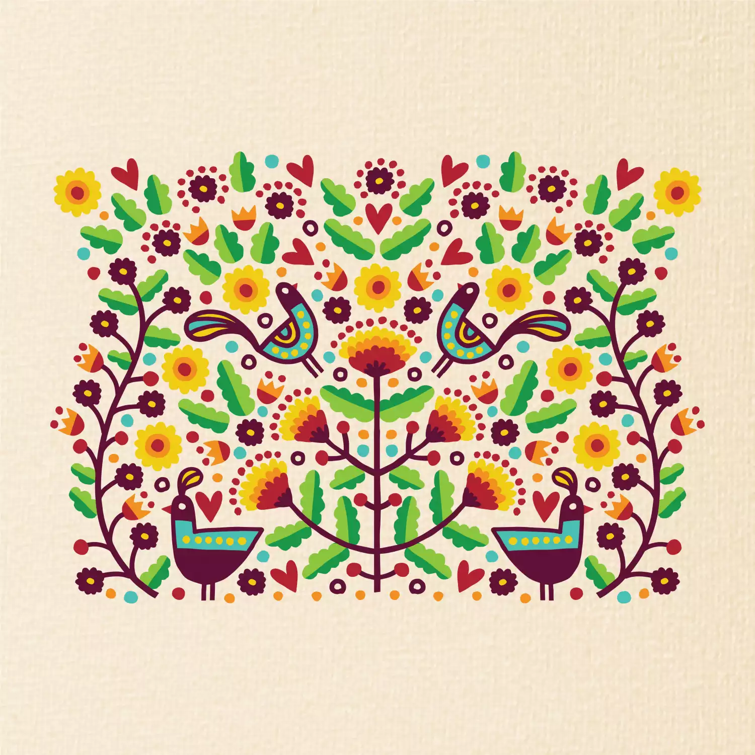 Folklor - barevně kvetiny obdélník