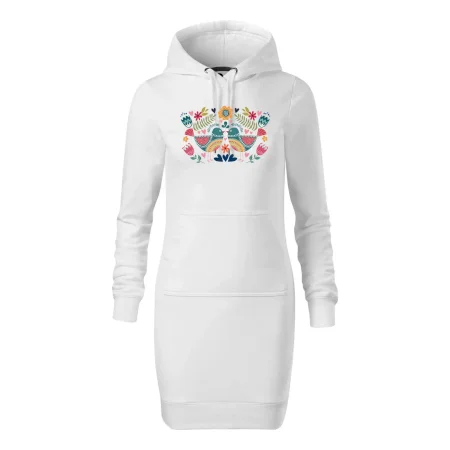 Dámské mikinové šaty MALFINI Snap 419 jsou ideální volbou pro ženy, které hledají pohodlný a stylový kousek pro volný čas nebo každodenní nošení. Lehce vypasovaný střih s bočními švy podtrhuje ženskou siluetu, zatímco kapuce s podšívkou a stahovací šňůrkou dodává ležérní vzhled.