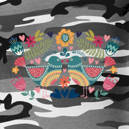 Motiv trička vychází z tradičních folklorních prvků: Na středu jsou dva výrazní a barevní ptáčci, stylizovaní v lidovém ornamentu. Design je doplněn decentními rostlinnými ornamenty a jemnou liniovou grafikou, která symbolizuje přírodu a český venkov. Barevné provedení přináší radost, energii a pocit tradice zároveň.