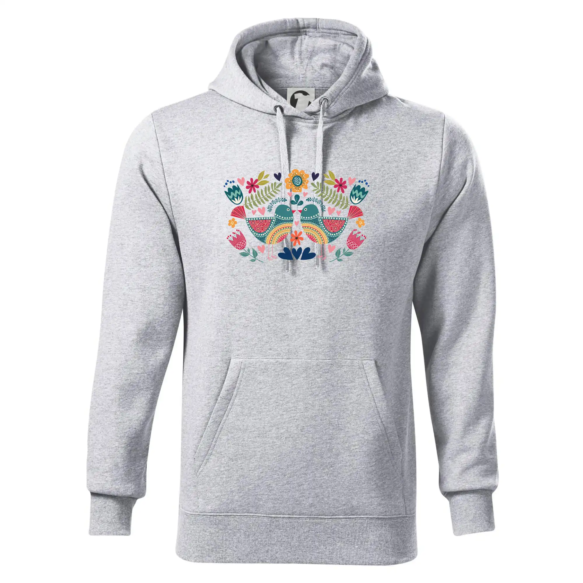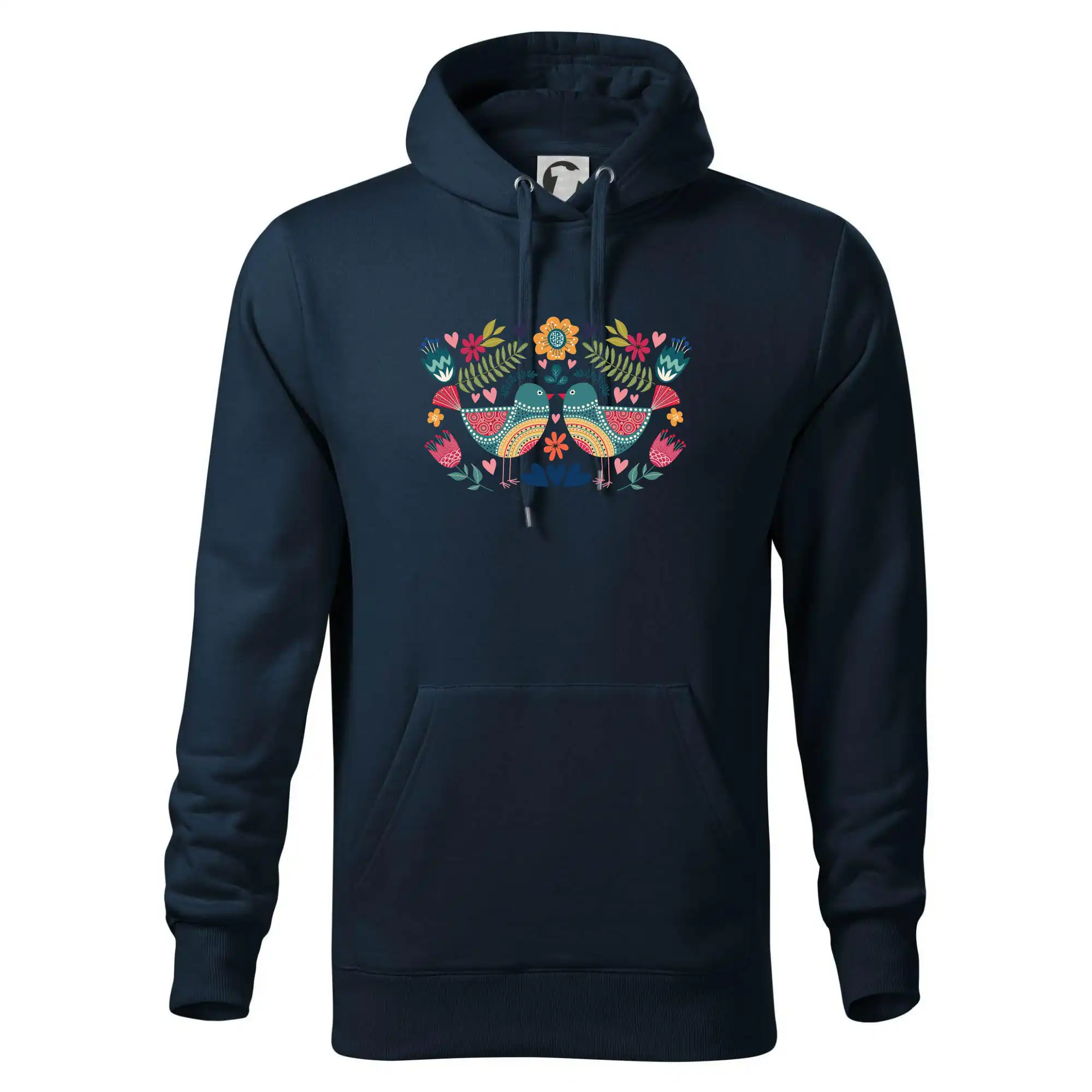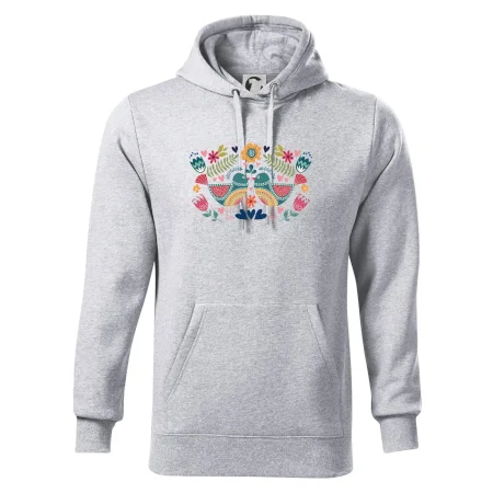 Motiv trička vychází z tradičních folklorních prvků: Na středu jsou dva výrazní a barevní ptáčci, stylizovaní v lidovém ornamentu. Design je doplněn decentními rostlinnými ornamenty a jemnou liniovou grafikou, která symbolizuje přírodu a český venkov. Barevné provedení přináší radost, energii a pocit tradice zároveň.
