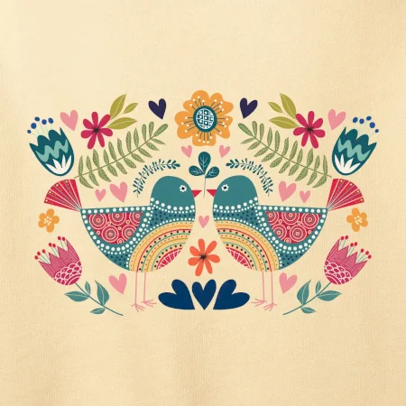 FOLKLOR – DVA BAREVNÍ PTÁČCI NA TRIČKU