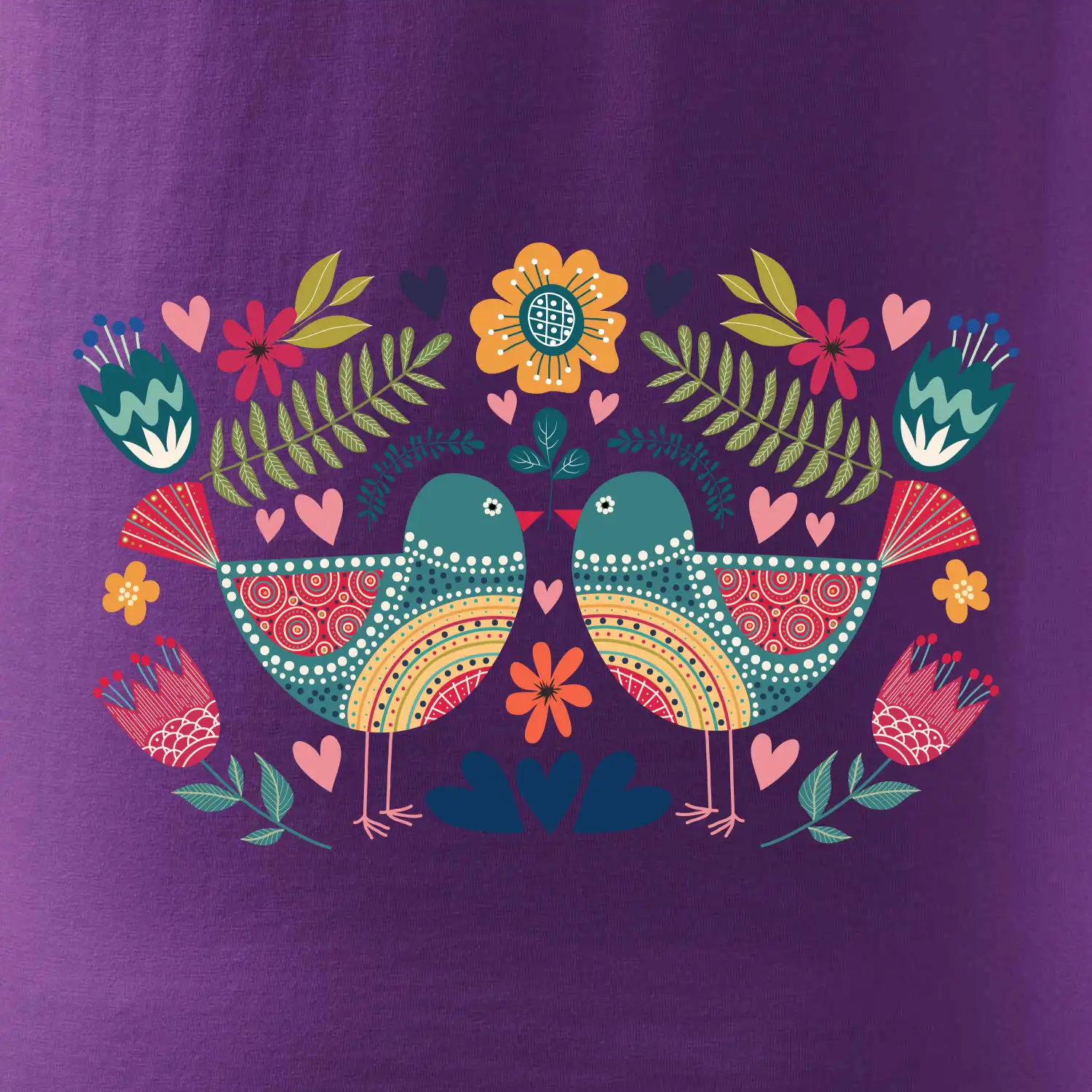 FOLKLOR – DVA BAREVNÍ PTÁČCI NA TRIČKU