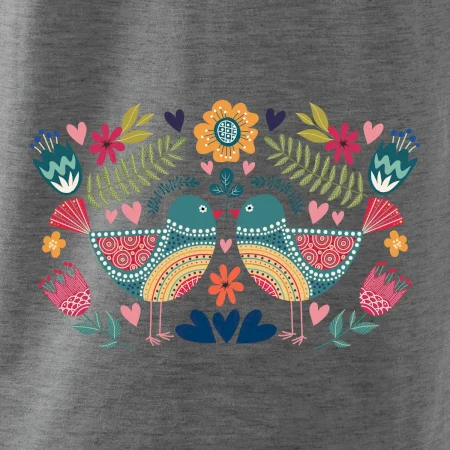 FOLKLOR – DVA BAREVNÍ PTÁČCI NA TRIČKU