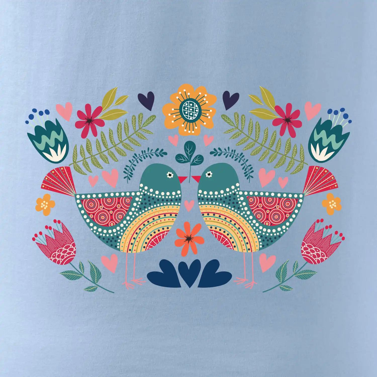 FOLKLOR – DVA BAREVNÍ PTÁČCI NA TRIČKU