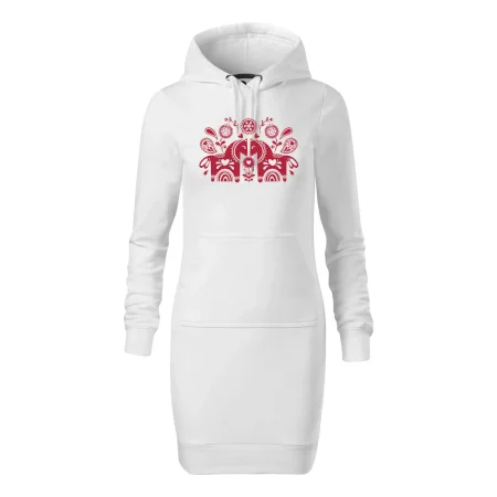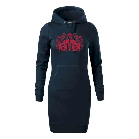Dámské mikinové šaty MALFINI Snap 419 jsou ideální volbou pro ženy, které hledají pohodlný a stylový kousek pro volný čas nebo každodenní nošení. Lehce vypasovaný střih s bočními švy podtrhuje ženskou siluetu, zatímco kapuce s podšívkou a stahovací šňůrkou dodává ležérní vzhled. Šaty mají délku nad kolena a jsou vybaveny nakládanou kapsou ve stylu „klokanky“. Materiál je měkký a příjemný na dotek díky směsi bavlny a polyesteru s nepočesanou vnitřní stranou.