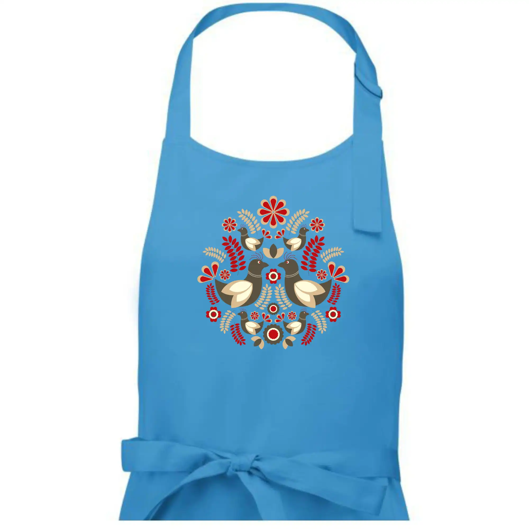 Elegantní folklórní motiv inspirovaný tradiční výšivkou, který přináší krásu venkova na moderní kousek oblečení. Hnědí ptáčci, květy a listy v harmonickém kruhu vytvářejí symbol lásky, přírody a života v rovnováze.
