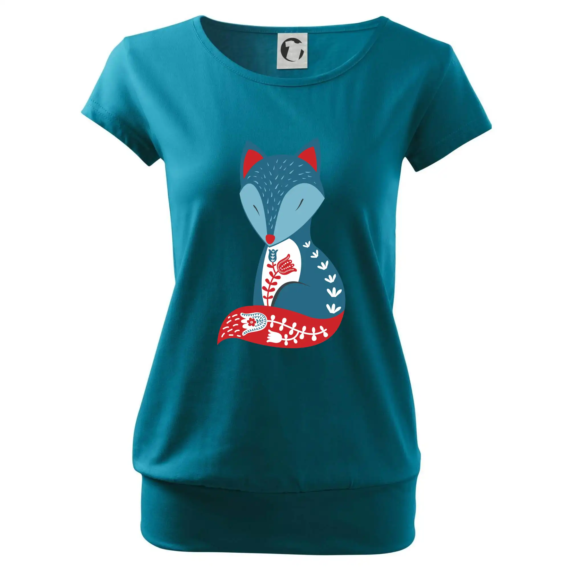 Trendové dámské triko s velmi krátkým rukávem, volnějšího střihu, v dolním kraji všité do širokého lemu. Kulatý průkrčník s úzkým lemem ze shodného materiálu.