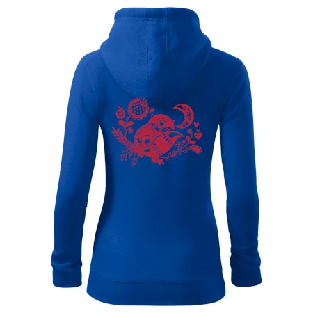 Dámská mikina MALFINI Trendy Zipper 411 je dokonalým spojením moderního vzhledu a každodenní praktičnosti. Její lehce vypasovaný střih s bočními švy zvýrazňuje ženskou siluetu, zatímco celopropínací zip a kapuce se stahovací šňůrkou dodávají ležérní nádech. Nakládané kapsy typu „klokanka“ nabízejí dostatek prostoru pro drobnosti. Materiál s počesanou vnitřní stranou poskytuje měkkost a teplo díky směsi bavlny a polyesteru.