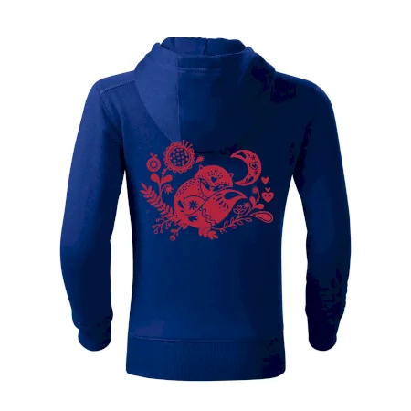 Dětská mikina MALFINI Trendy Zipper 412 je navržena pro aktivní děti, které chtějí vypadat skvěle a cítit se pohodlně. Rovný střih s bočními švy je ideální pro volný pohyb při hrách nebo každodenních aktivitách. Mikina je vybavena celopropínacím plastovým zipem, kapucí s podšívkou (bez stahovací šňůrky z bezpečnostních důvodů) a praktickými nakládanými kapsami typu „klokanka“. Počesaná vnitřní strana z French Terry materiálu poskytuje teplo a měkkost na dotek.