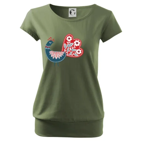 Trendové dámské triko s velmi krátkým rukávem, volnějšího střihu, v dolním kraji všité do širokého lemu. Kulatý průkrčník s úzkým lemem ze shodného materiálu.