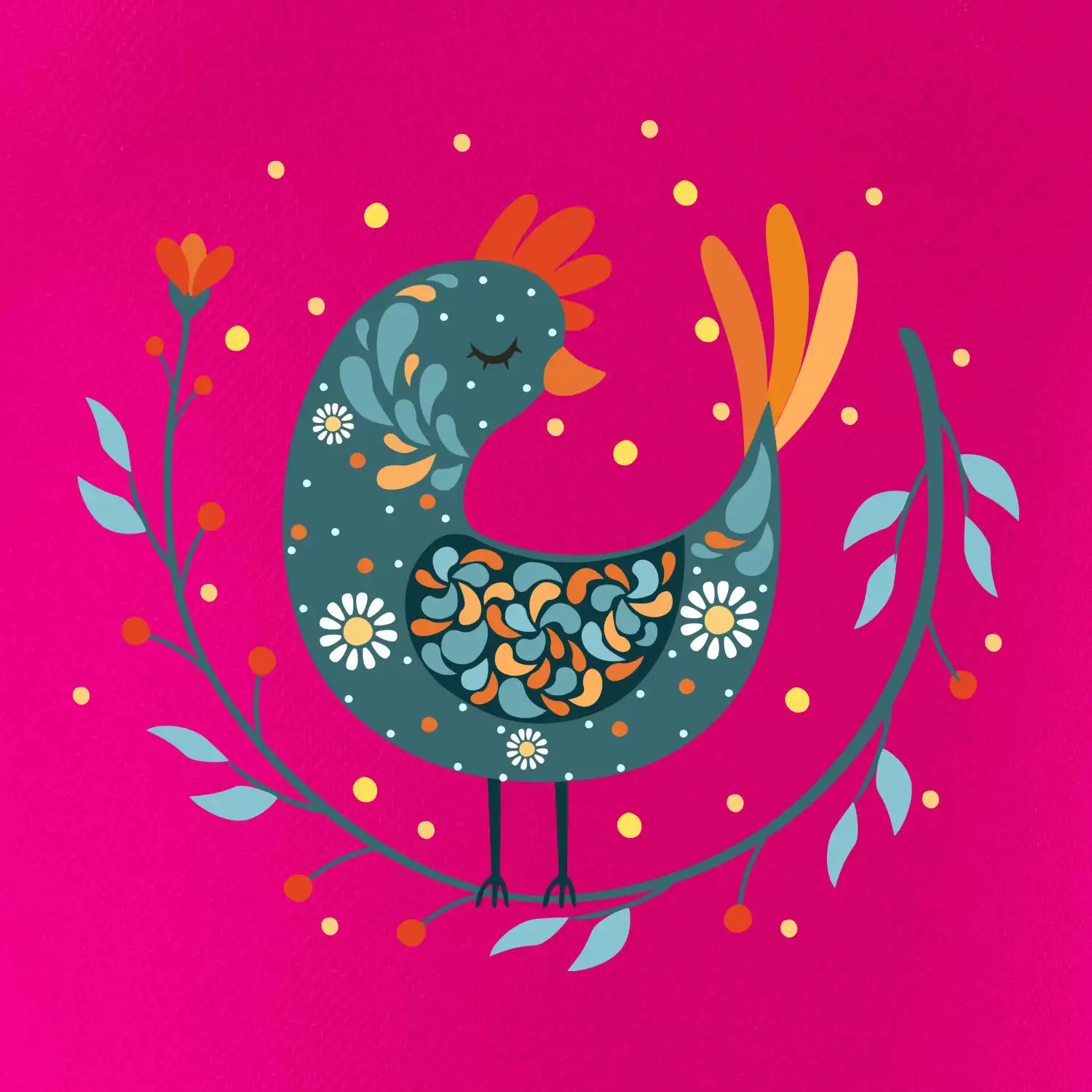 Folklor - slepice s kopretinou