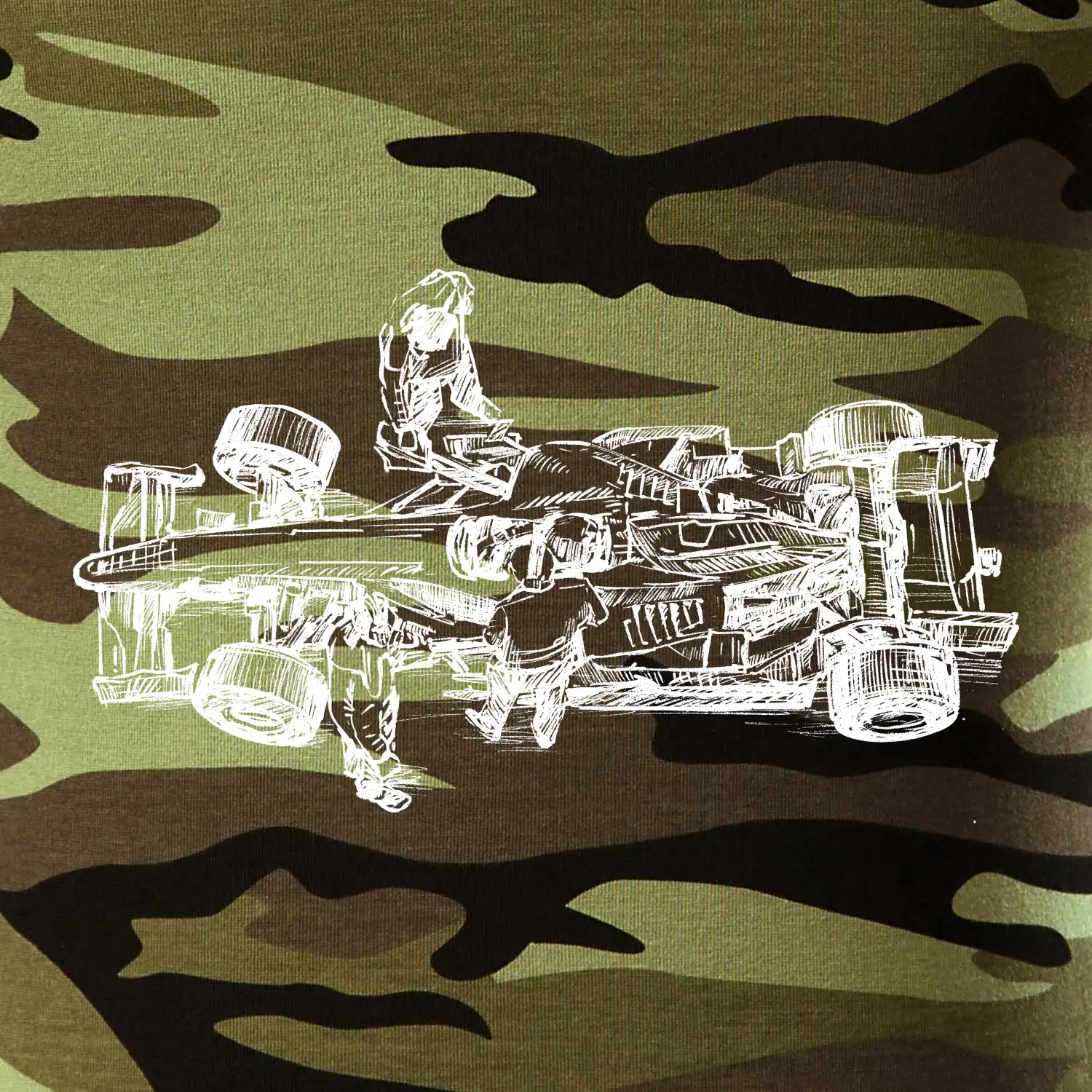 Tričko střední gramáže v barvách camouflage. Střih s bočními švy. Lem průkrčníku ze žebrového úpletu s přídavkem 5 % elastanu. Vnitřní část zadního průkrčníku začištěna páskou v barvě camouflage.
