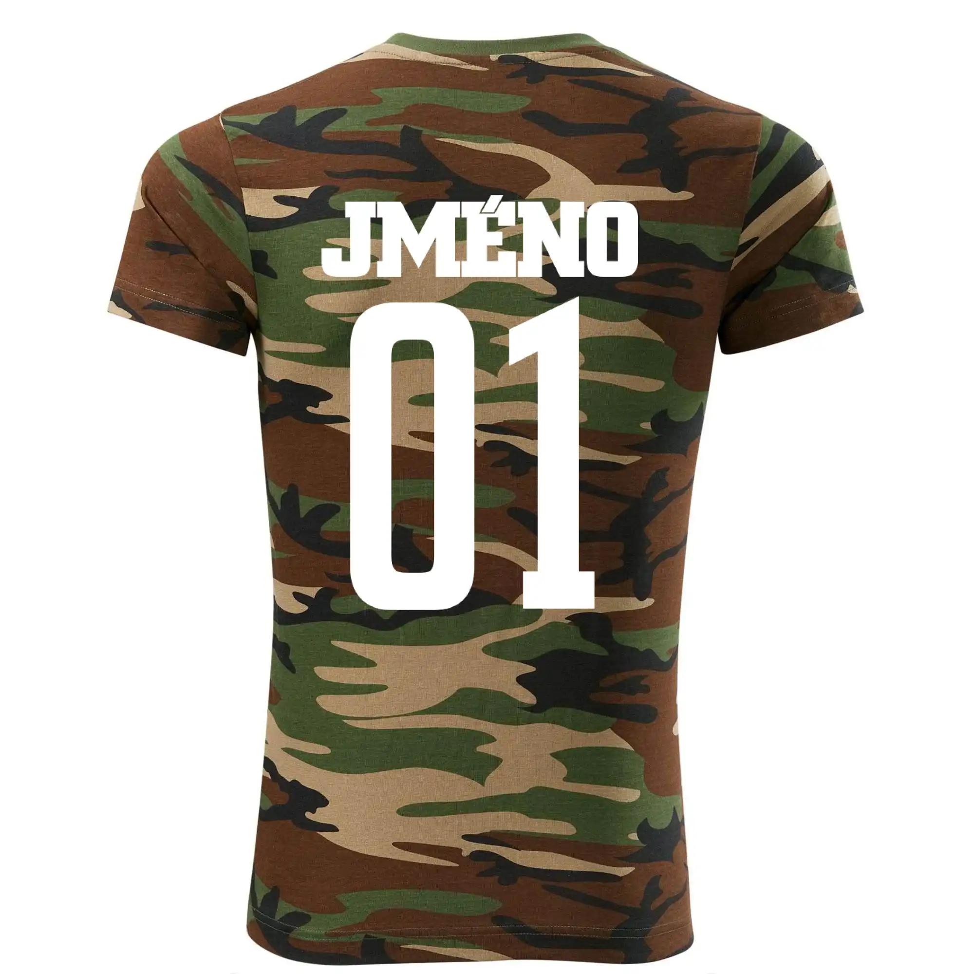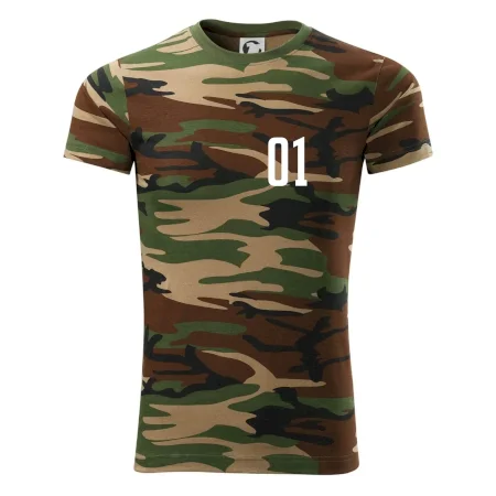 Tričko střední gramáže v barvách camouflage. Střih s bočními švy. Lem průkrčníku ze žebrového úpletu s přídavkem 5 % elastanu. Vnitřní část zadního průkrčníku začištěna páskou v barvě camouflage.