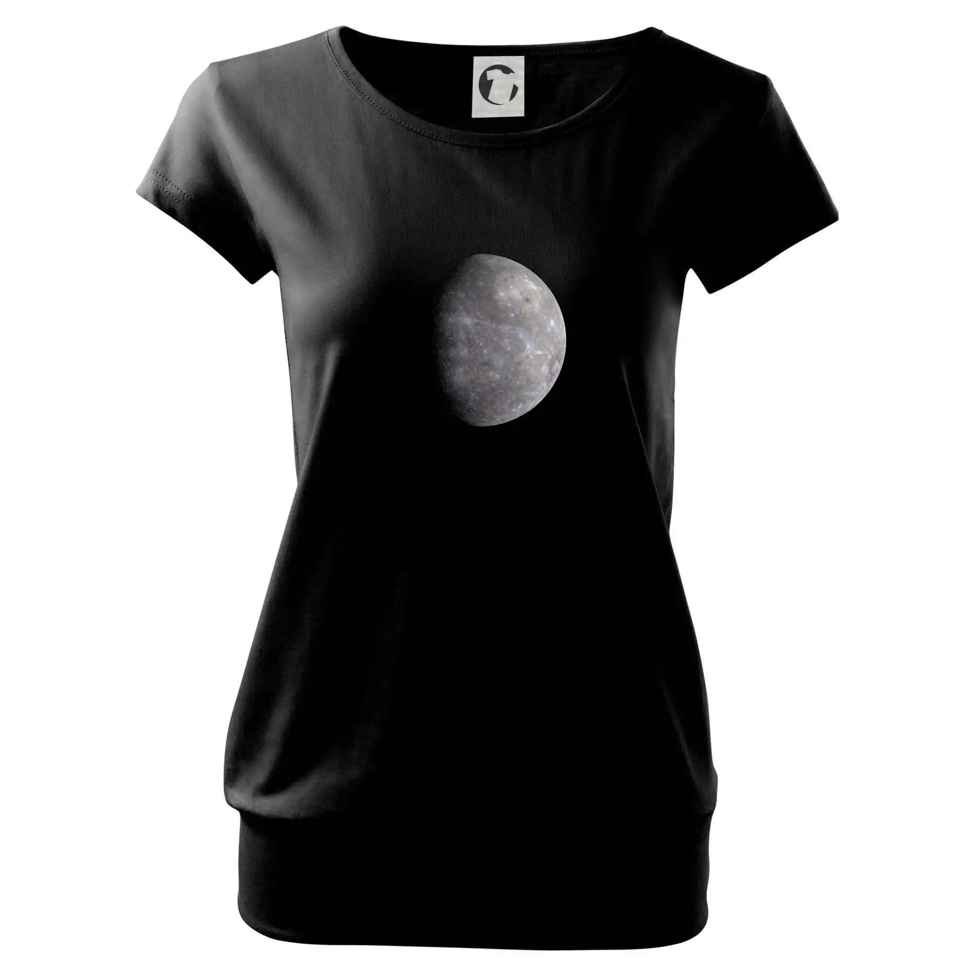 Trendové dámské triko s velmi krátkým rukávem, volnějšího střihu, v dolním kraji všité do širokého lemu. Kulatý průkrčník s úzkým lemem ze shodného materiálu.