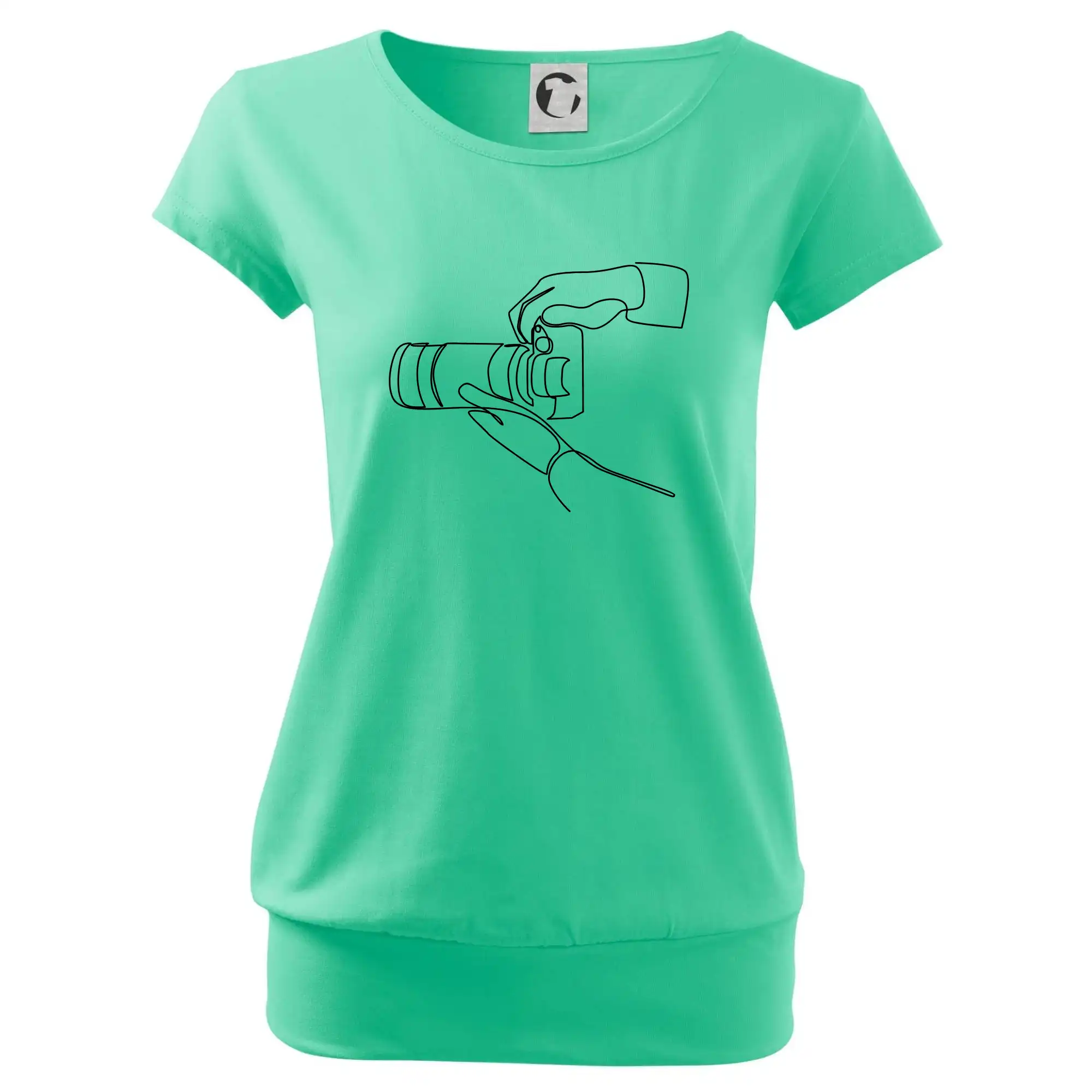 Trendové dámské triko s velmi krátkým rukávem, volnějšího střihu, v dolním kraji všité do širokého lemu. Kulatý průkrčník s úzkým lemem ze shodného materiálu.