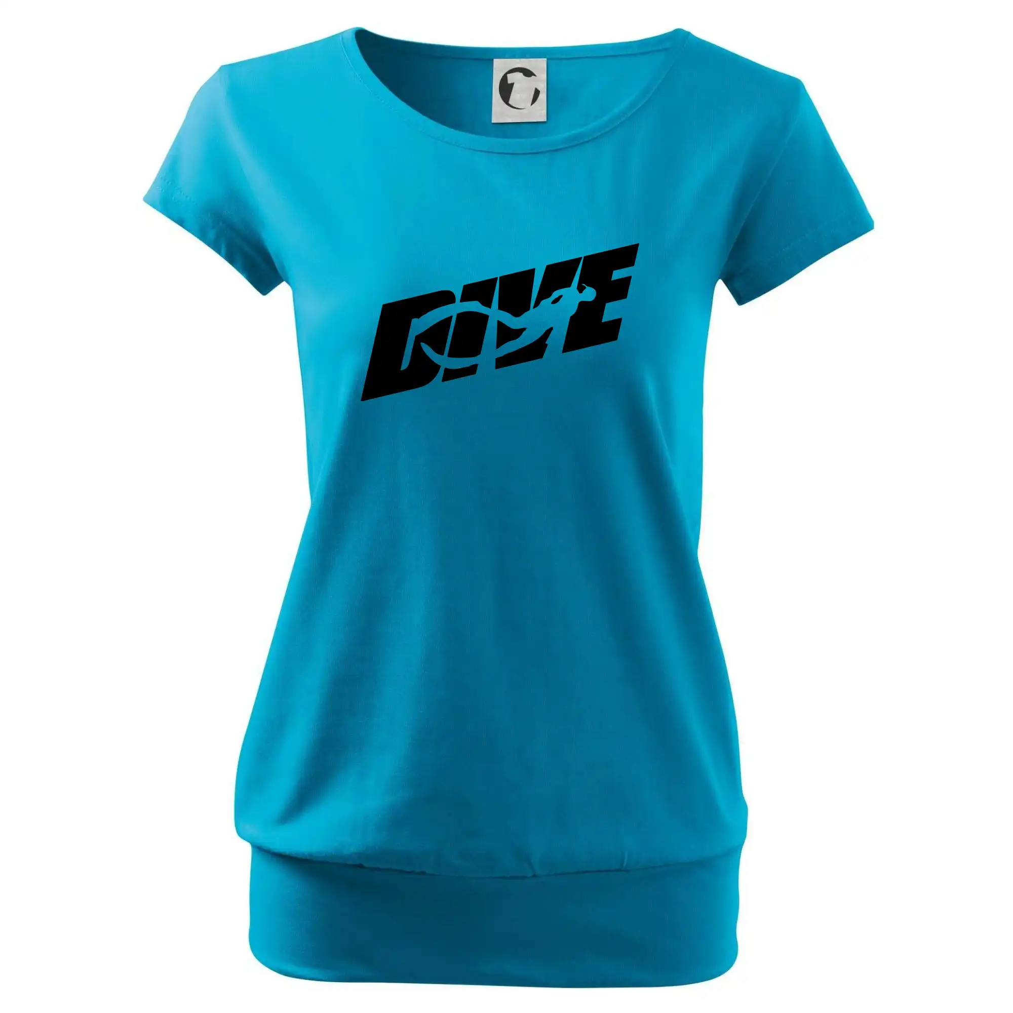Trendové dámské triko s velmi krátkým rukávem, volnějšího střihu, v dolním kraji všité do širokého lemu. Kulatý průkrčník s úzkým lemem ze shodného materiálu.