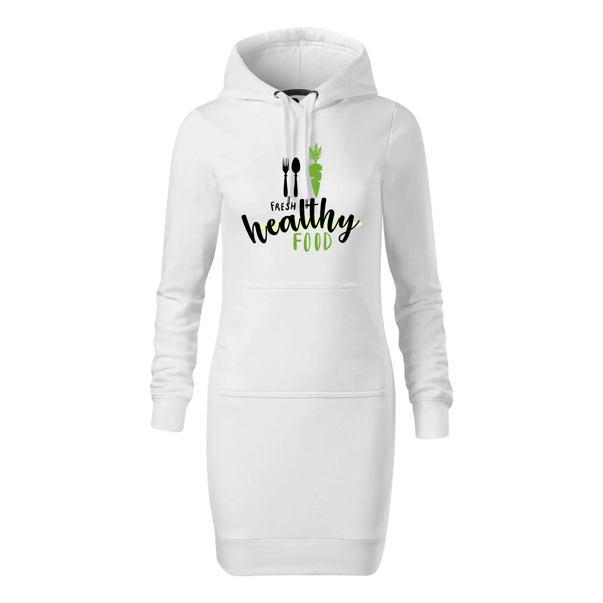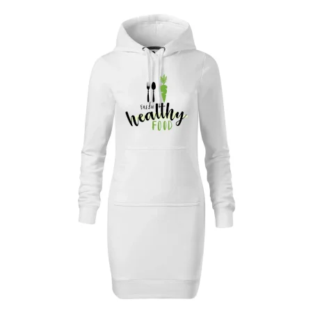 Dámské mikinové šaty MALFINI Snap 419 jsou ideální volbou pro ženy, které hledají pohodlný a stylový kousek pro volný čas nebo každodenní nošení. Lehce vypasovaný střih s bočními švy podtrhuje ženskou siluetu, zatímco kapuce s podšívkou a stahovací šňůrkou dodává ležérní vzhled.