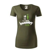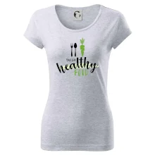 Motiv pro všechny, kteří se snaží dodržovat zdravý životní styl. Ukaž všem že preferuješ zdravé a čerstvé jídlo! Perfektní triko na běhání nebo do fitka nebo jen tak na výlet s kámoškama.