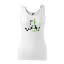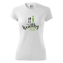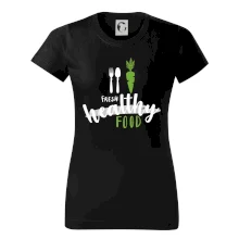 Motiv pro všechny, kteří se snaží dodržovat zdravý životní styl. Ukaž všem že preferuješ zdravé a čerstvé jídlo! Perfektní triko na běhání nebo do fitka nebo jen tak na výlet s kámoškama.