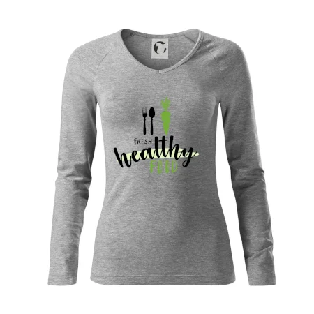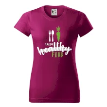 Motiv pro všechny, kteří se snaží dodržovat zdravý životní styl. Ukaž všem že preferuješ zdravé a čerstvé jídlo! Perfektní triko na běhání nebo do fitka nebo jen tak na výlet s kámoškama.