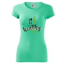 Motiv pro všechny, kteří se snaží dodržovat zdravý životní styl. Ukaž všem že preferuješ zdravé a čerstvé jídlo! Perfektní triko na běhání nebo do fitka nebo jen tak na výlet s kámoškama.