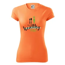 Motiv pro všechny, kteří se snaží dodržovat zdravý životní styl. Ukaž všem že preferuješ zdravé a čerstvé jídlo! Perfektní triko na běhání nebo do fitka nebo jen tak na výlet s kámoškama.