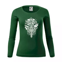 Tolerantnější vypasování dámského střihu, který je vhodný pro všechny typy postavy, ideální délka rukávů a konzervativní výstřih zakončený žebrováním, které skvěle drží tvar.