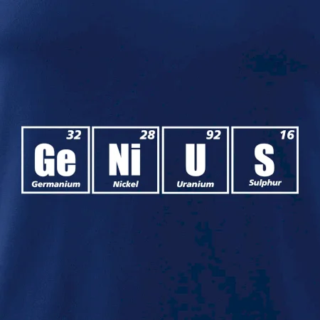 Trička a mikiny pro milovníky chemie, originálních věcí a humoru. Periodické tabulky lze provést v jakékoliv variantě! Pokud ti není chemie cizí a jsi genius, tohle triko pro tebe bude to pravé. Triko, na kterém je periodická tabulka prvků, je vhodný dárek pro každého génia. Triko nápisem GeNiUS vytvořeným z prvků periodické tabulky.