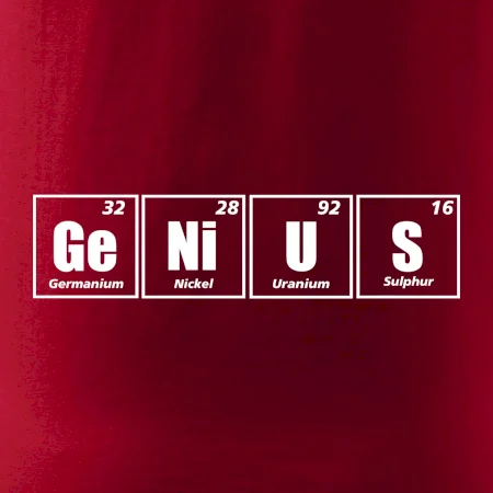 Trička a mikiny pro milovníky chemie, originálních věcí a humoru. Periodické tabulky lze provést v jakékoliv variantě! Pokud ti není chemie cizí a jsi genius, tohle triko pro tebe bude to pravé. Triko, na kterém je periodická tabulka prvků, je vhodný dárek pro každého génia. Triko nápisem GeNiUS vytvořeným z prvků periodické tabulky.