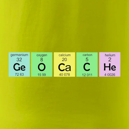 Trička a mikiny pro milovníky chemie, originálních věcí a humoru. Periodické tabulky lze provést v jakékoliv variantě! Pokud ti není chemie a geocaching cizí, tohle triko pro tebe bude to pravé. Geocachingové triko, na kterém je periodická tabulka prvků, je vhodný dárek pro každého "kačera". Triko pro geocachong s nápisem GeOCaCHe vytvořeným z prvků periodické tabulky. Teď už najdeš každou kešku!