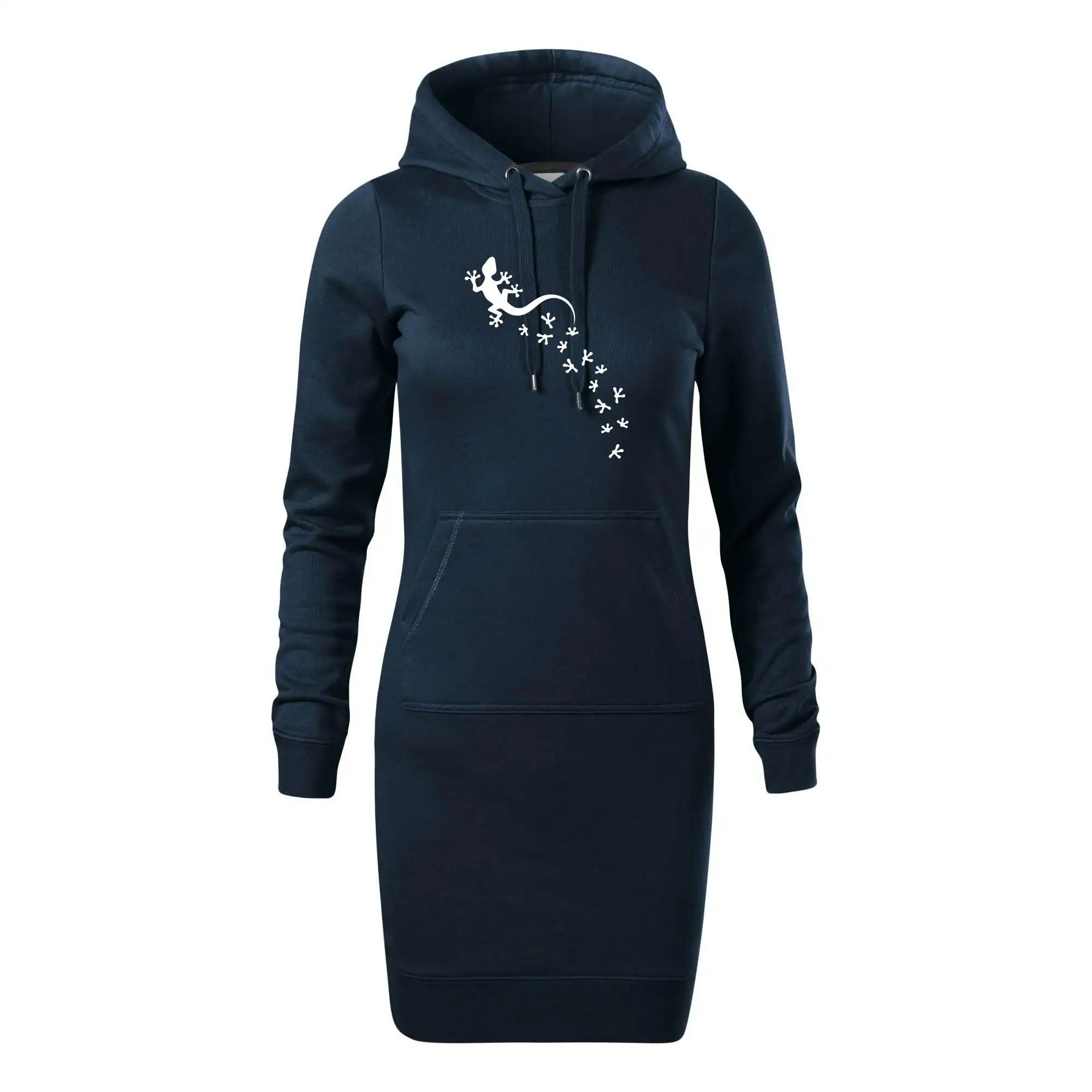 Dámské mikinové šaty MALFINI Snap 419 jsou ideální volbou pro ženy, které hledají pohodlný a stylový kousek pro volný čas nebo každodenní nošení. Lehce vypasovaný střih s bočními švy podtrhuje ženskou siluetu, zatímco kapuce s podšívkou a stahovací šňůrkou dodává ležérní vzhled. Šaty mají délku nad kolena a jsou vybaveny nakládanou kapsou ve stylu „klokanky“. Materiál je měkký a příjemný na dotek díky směsi bavlny a polyesteru s nepočesanou vnitřní stranou.