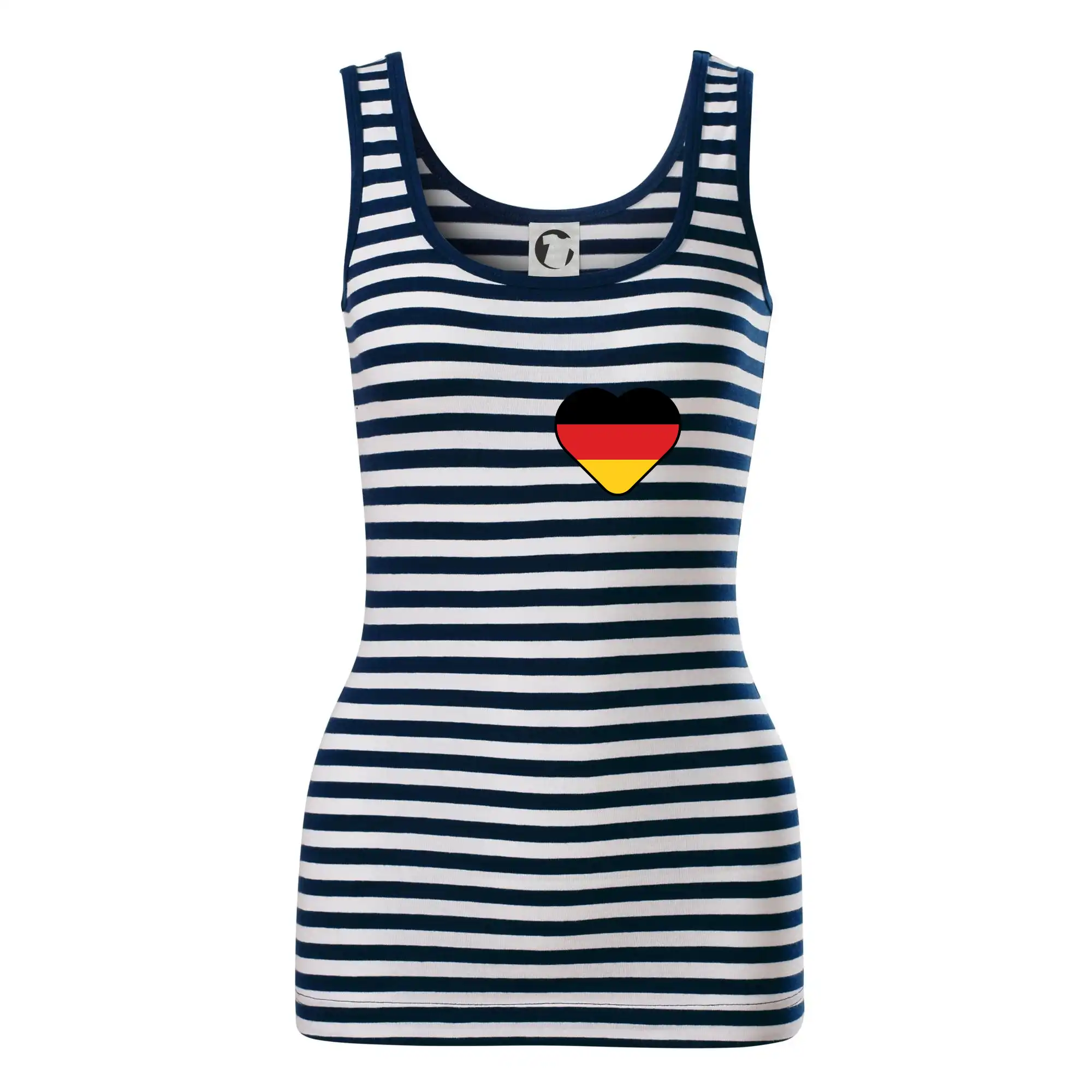 Dámské tílko MALFINI Sailor Top 806 přináší ikonický námořnický vzhled s bílo-modrými pruhy, ideální pro letní dny, výlety nebo ležérní outfity.
