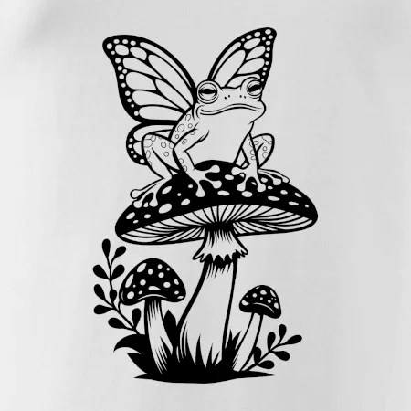 Goblincore černá houba se žábou