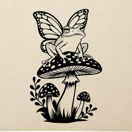Goblincore černá houba se žábou