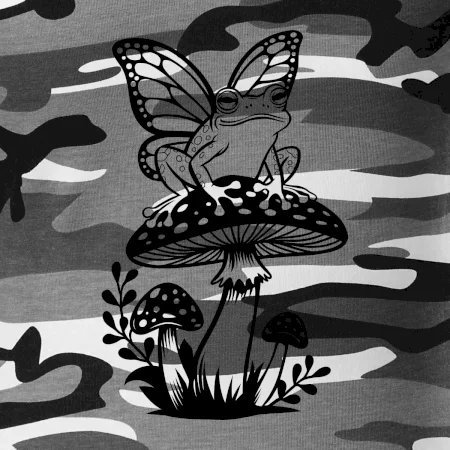 Goblincore černá houba se žábou
