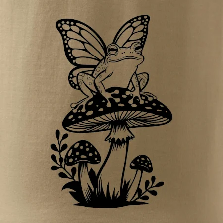 Goblincore černá houba se žábou