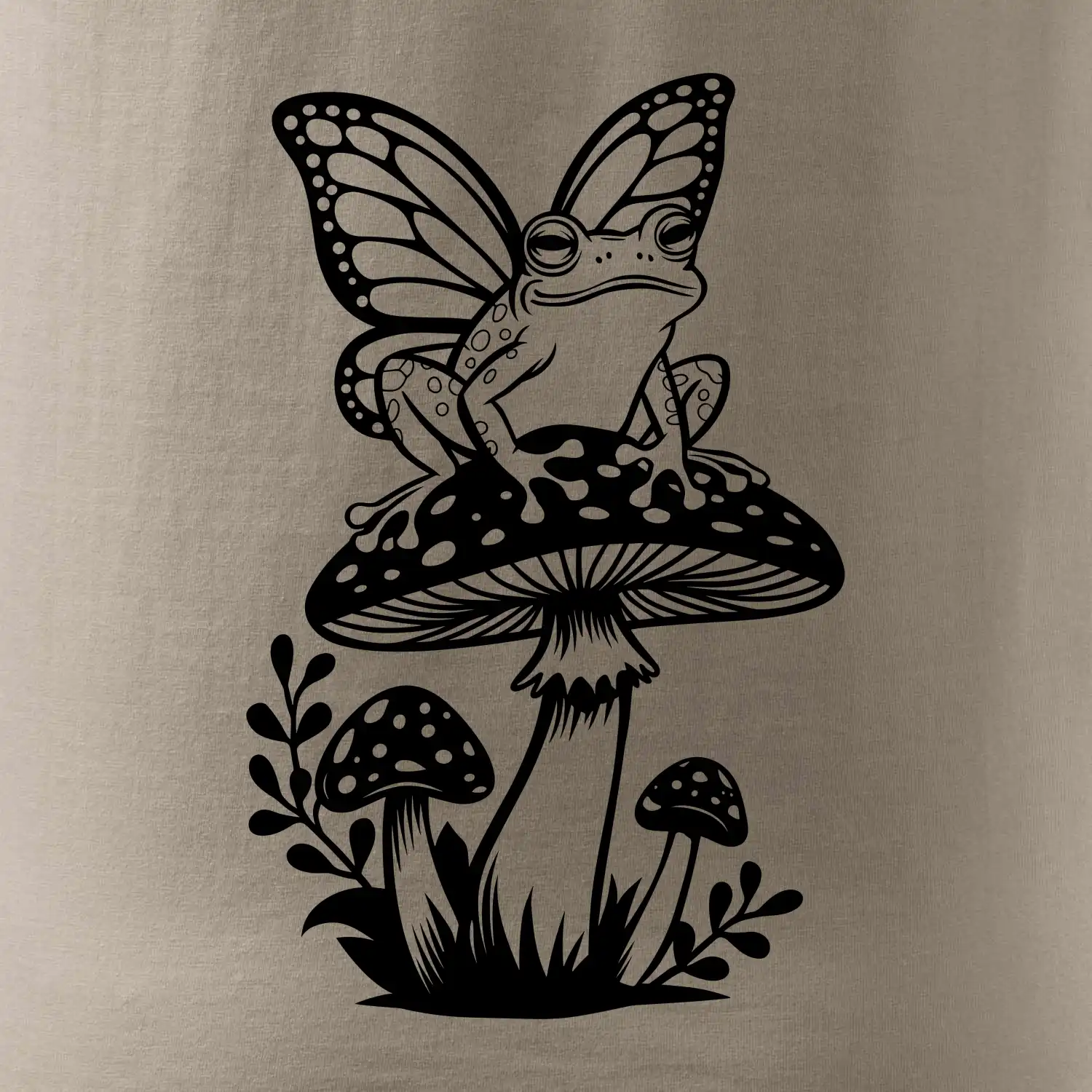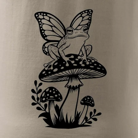 Goblincore černá houba se žábou