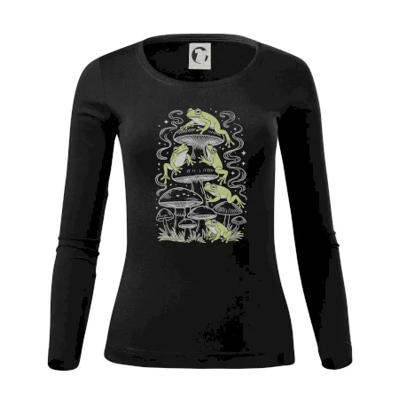 Goblincore frogs and various mushrooms